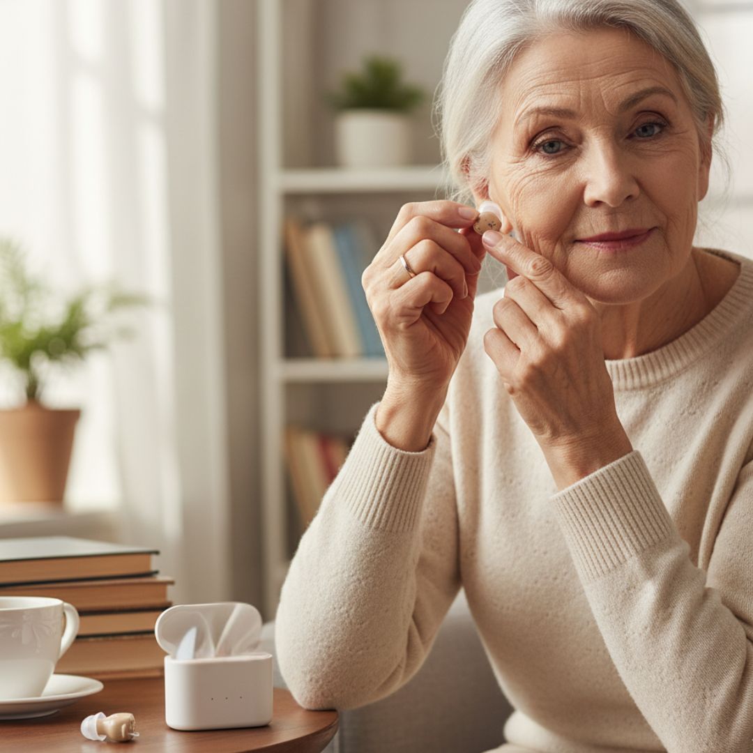 Die HörVital Hörhilfe sitzt unauffällig im Ohr und ist von außen kaum sichtbar. So können Sie Ihr Hörvermögen verbessern, ohne dass es jemand bemerkt. Ideal für alle, die Wert auf Diskretion und Natürlichkeit legen.