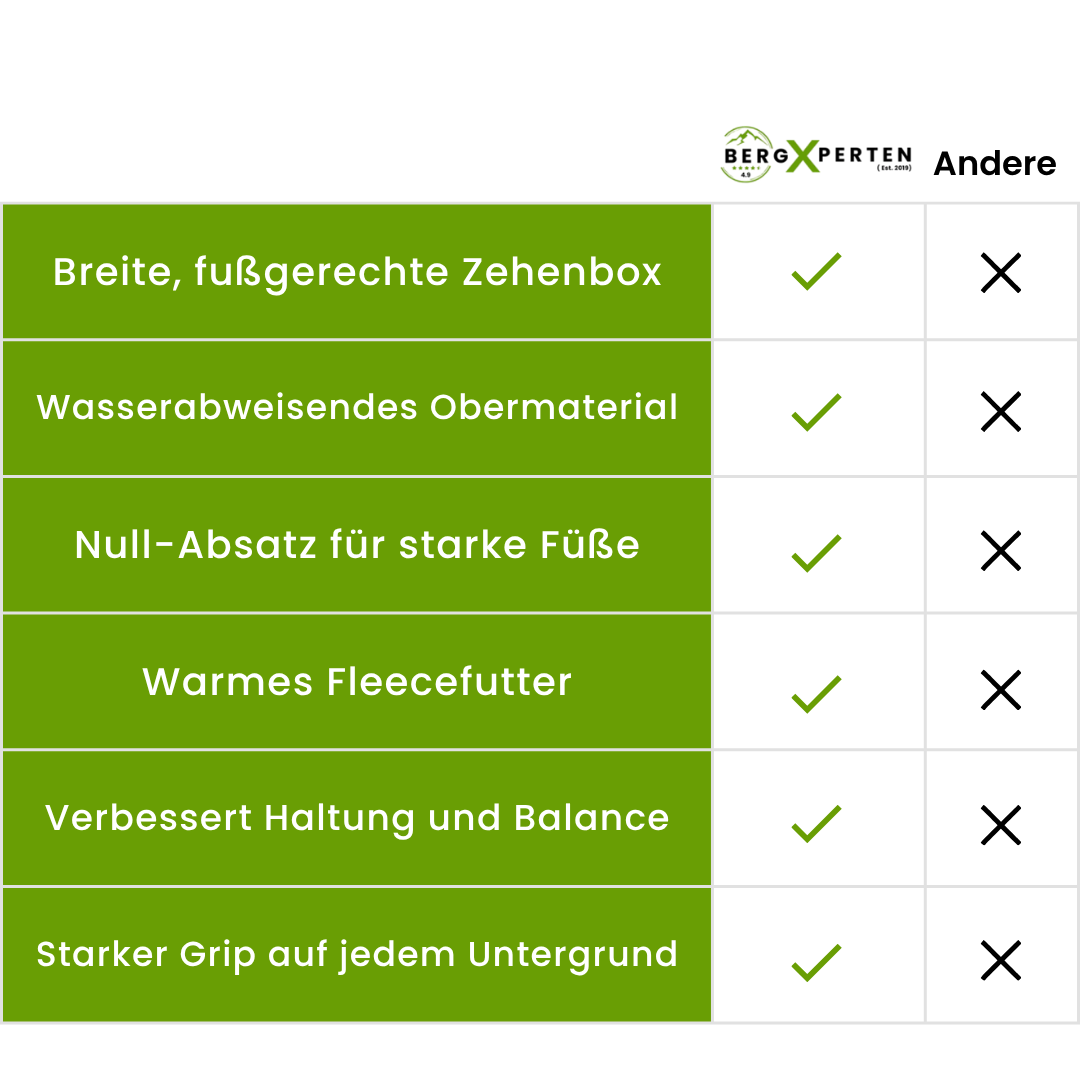 Wir bieten eine 30-tägige Geld-zurück-Garantie auf alle BergXperten-Produkte. Wenn Sie mit Ihrem Kauf nicht zufrieden sind, können Sie die Schuhe innerhalb von 30 Tagen zurückgeben und erhalten den vollen Kaufpreis zurück, ohne Fragen zu stellen.