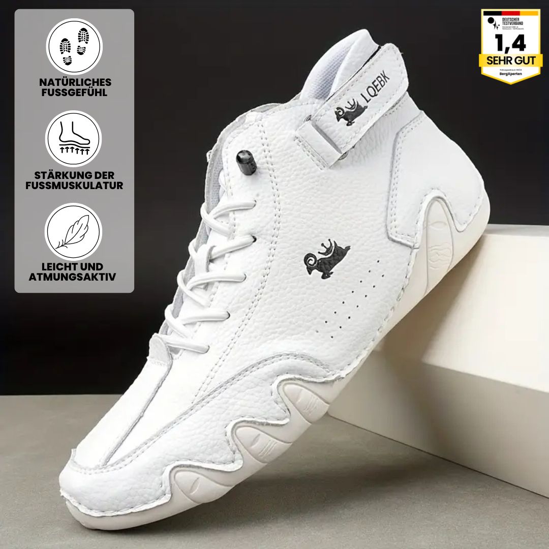 Konventionelle, starre Schuhe können Ihre natürliche Bewegung einschränken und langfristig zu Fuß-, Rücken- oder Gelenkschmerzen führen. Die Lösung: Barfußgehen – oder ein Schuh, der es imitiert.